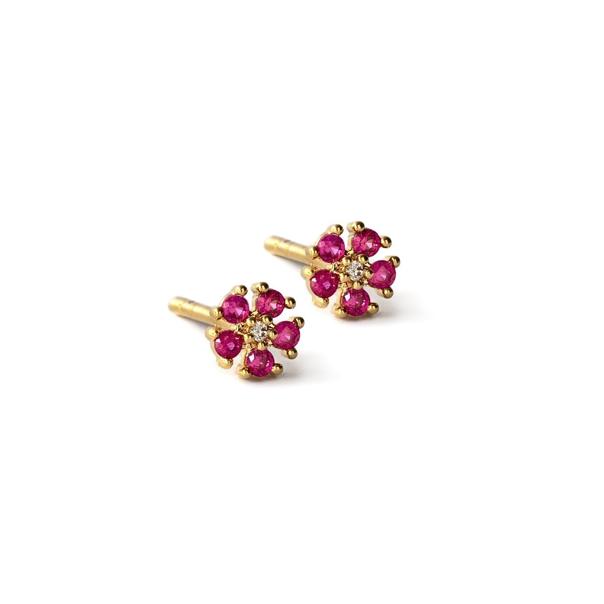 Los aretes Roseta Florecita Fucsia, son elaborados con una aleación de metal (cobre), revestida con 3 láminas de Oro (24kt, 18kt y 22kt), lo cual permite que la joya no pierda su color fácilmente.